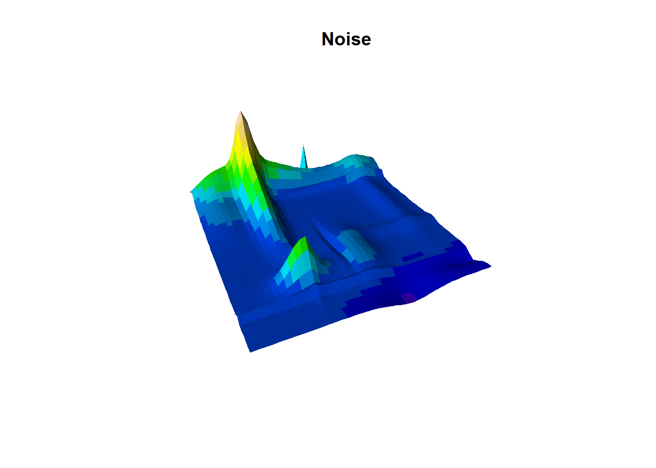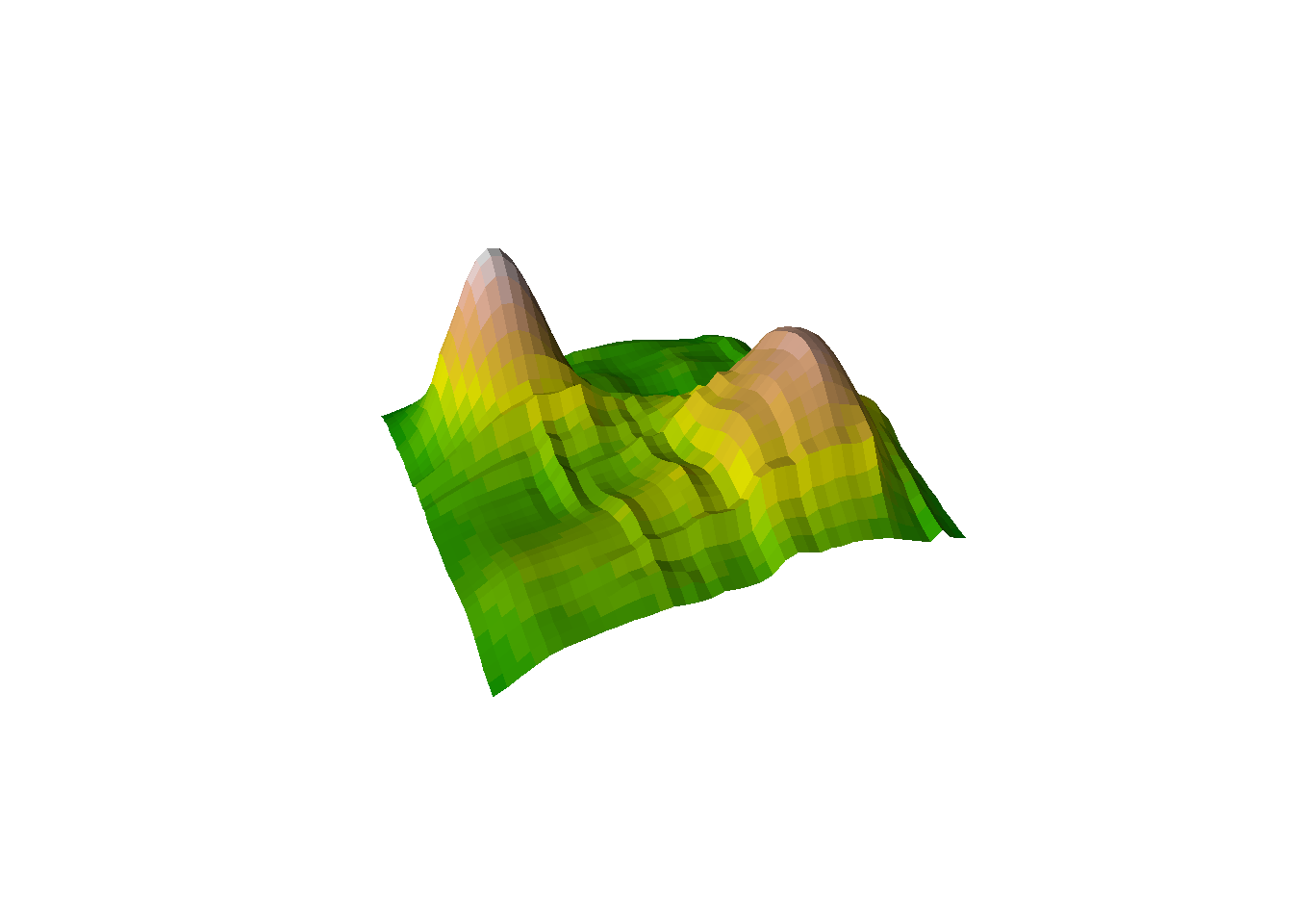 # Build a noisy surface by summing n random Gaussian "bumps".