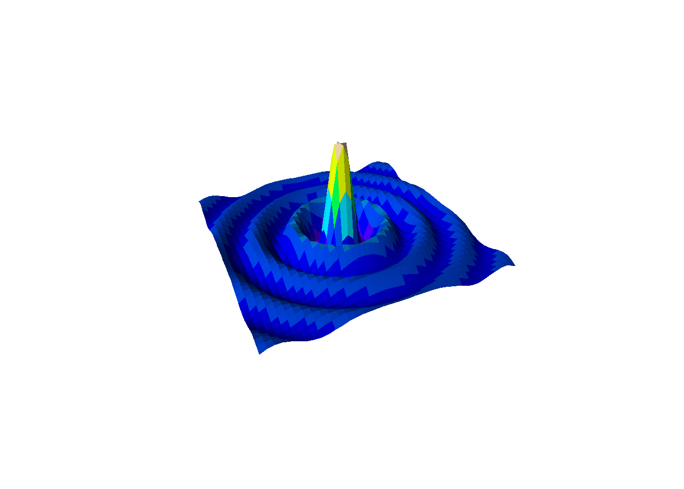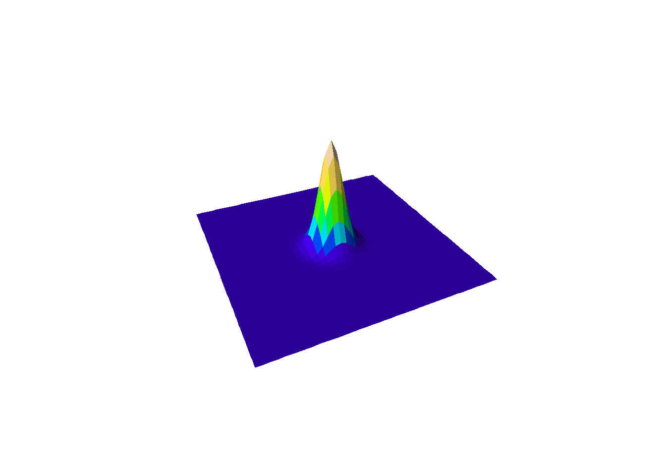 # outer() evaluates gaussian_2d for all x-y combinations.